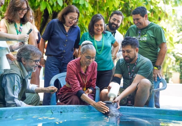 Após a cerimônia de anúncio das iniciativas, a ministra Marina Silva visitou filhotes de peixes-boi mantidos pelo Instituto Nacional de Pesquisas da Amazônia (Inpa/MCTI) e pela Associação Amigos do Peixe-boi (Ampa), que realizam a reabilitação dos animais.
